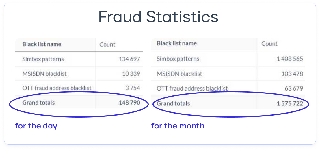 “Fraudsters and unfair SMS aggregators constantly invent new ways to bypass anti-fraud systems. That’s why we monitor metrics non-stop and promptly update settings to prevent revenue loss for the operator and ensure expected profitability.”