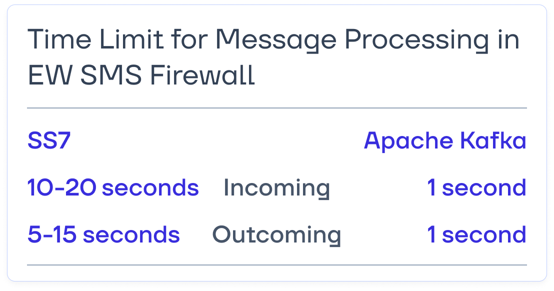 The Apache Kafka message broker imposed additional constraints on message processing, requiring us to modify the architecture of EW SMS Firewall. These changes ensured seamless integration while maintaining efficiency and performance