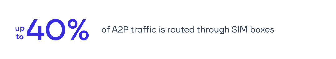 – Using SIM boxes. Fraudsters disguise A2P traffic as P2P by using devices loaded with regular subscriber SIM cards. P2P messages are cheaper than commercial ones, and with prepaid plans, the cost drops even further.