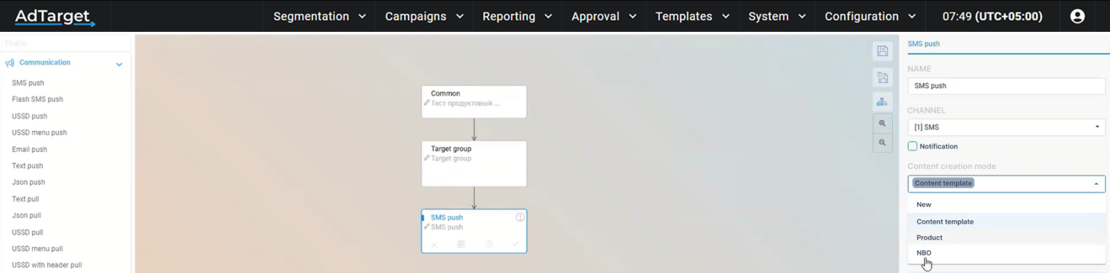The product catalog simplifies campaign management: there’s no need to describe products manually, build workflows from scratch, or write offer texts for every campaign. Users can simply select the necessary parameters from a drop-down list and adjust them if needed.