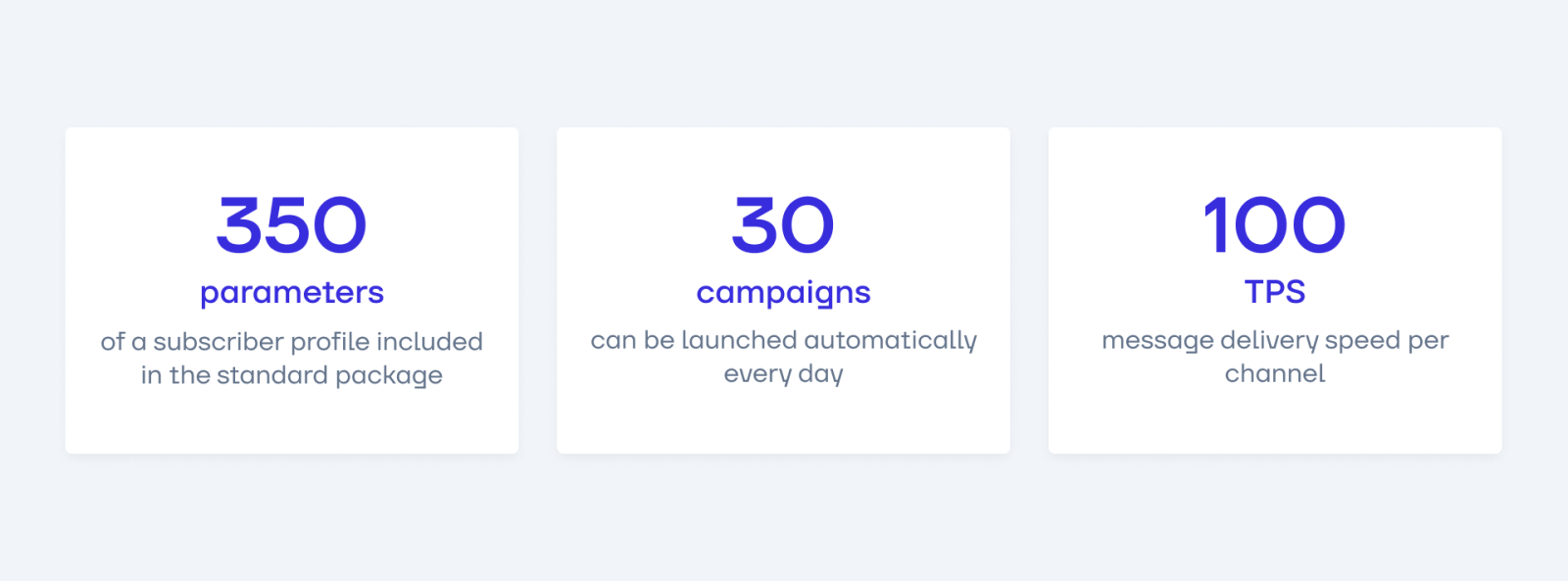 – The ability to integrate with external data analytics systems and the operator’s key communication channels: SMS, email, and mobile app