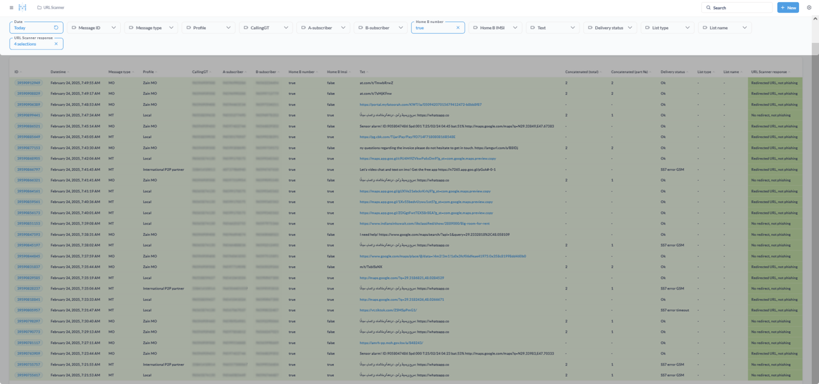 Once the URL scanner was ready, we analyzed the SMS traffic of one of our clients and, over the course of a month, identified over 1,000 messages containing phishing links. The mobile operator then decided to implement the URL scanner to protect its subscribers from fraud and strengthen customer loyalty.