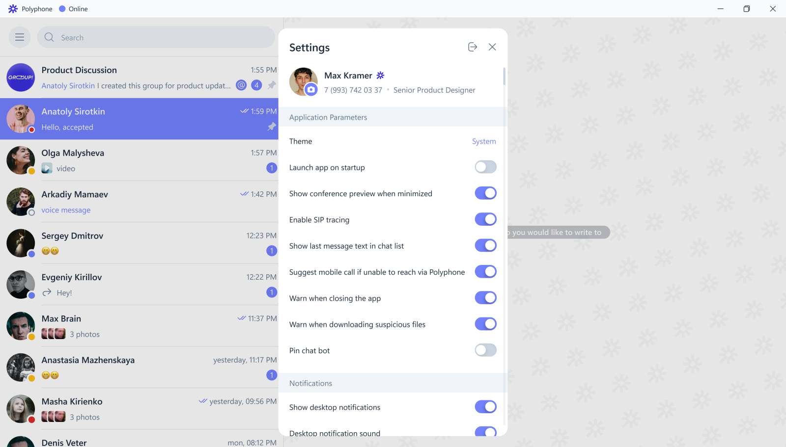 In addition to major updates, we've implemented several enhancements. For example, notification settings for new messages are now synchronized across all EW Polyphone client applications—changes made in one app are automatically applied in the others.