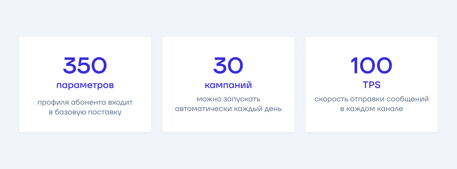 — возможность интеграции с внешней системой анализа данных и необходимыми каналами оператора: SMS, email, мобильное приложение.