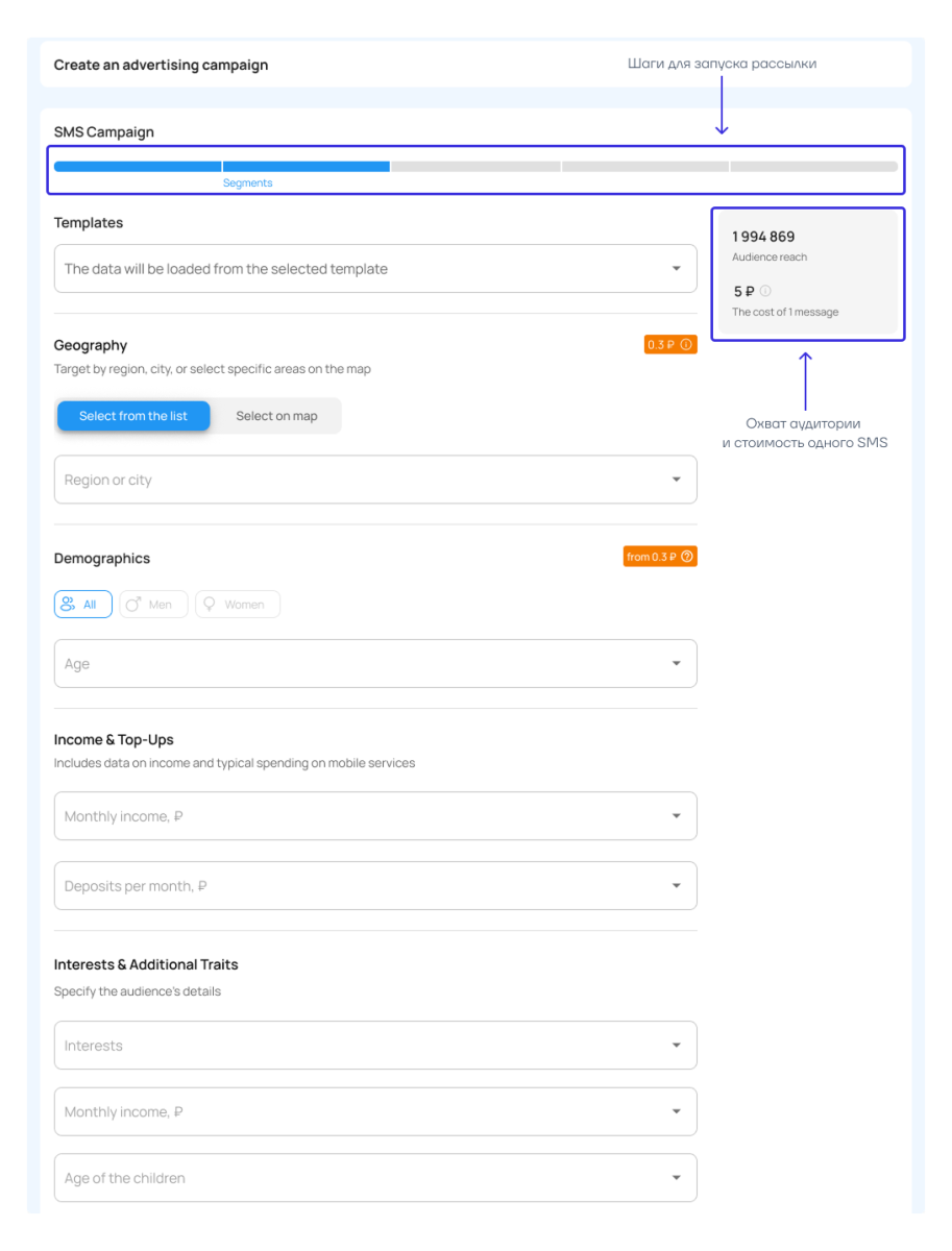 Рекламодатели могут запускать рассылки как по абонентской базе оператора, так и по собственной. В таком случае таргетинг настраивается только для тех клиентов, кто пользуется услугами данного оператора. Абонентам других телеком-компаний сообщения отправляться не будут.