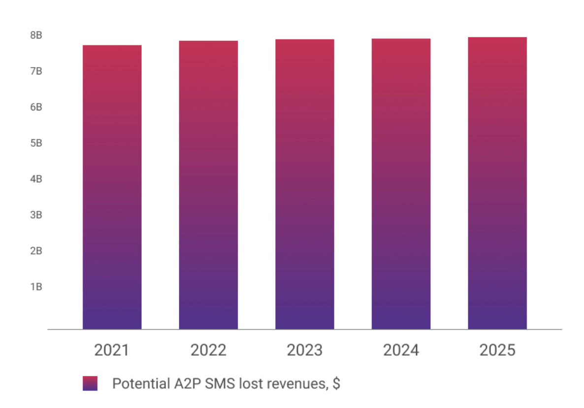 | $ 188 000 за 3 месяца составила недополученная прибыль оператора от A2P-трафика |