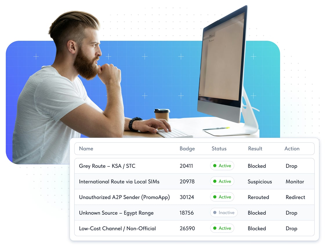 Identify suspicious routing and “gray” A2P delivery schemes. Increase revenue by redirecting traffic through official channels at applicable rates.
